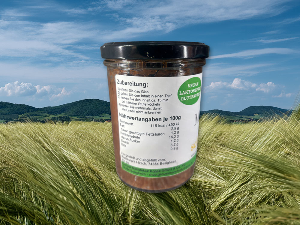 Unsere fertig gekochten Linsen im Glas sind die schnelle und praktische Lösung für eine gute Mahlzeit. Einfach erwärmen und sofort genießen – ideal, wenn es schnell gehen muss.